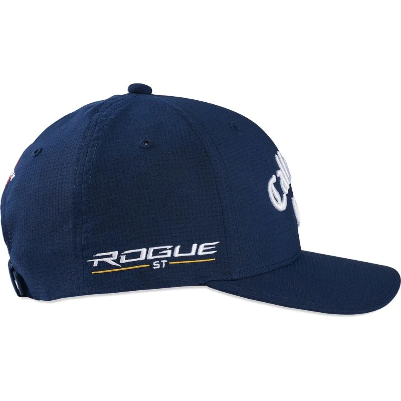 The Official 2022 Tour performance golf cap as worn on tour by Callaway Staff Players. Featuring embroidered Callaway Rogue ST, Apex, Chrome Soft & Odyssey putter tour logos.