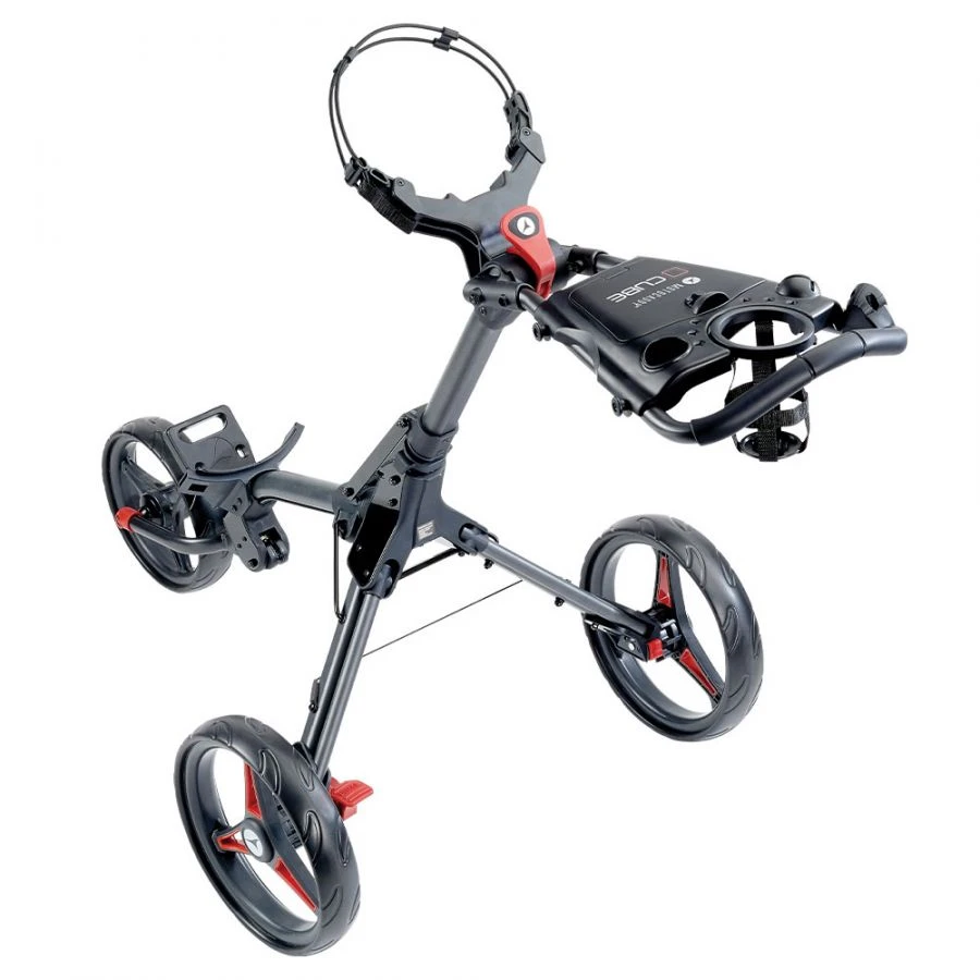 A supremely compact push trolley that is easily folded up and down; designed to be ergonomic, lightweight and friction-free no matter the turf. A foot parking brake ensures maximum control, with a variety of added features such as accessory compartments, bag supports and adjustability; all in an extremely stylish and functional design.