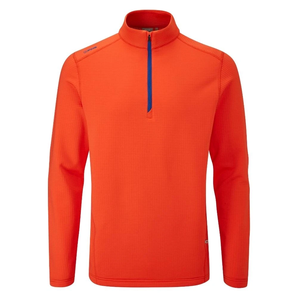 The Ping Edwin is a 1/2 zip sweater perfect for those early morning rounds or spring days. Made from 88% Polyester, 12% Spandex, this sweater features Ping’s Sensorwarm technology, which will maintain heat, moisture and thermal properties within your sweater.