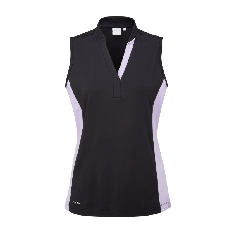 Ping Ladies Bardot Sleeveless Polo Shirt – Black/Cool Lilac